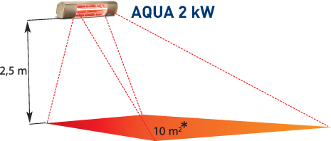 Özel reflektör tasarımının uygulandığı AQUA modelleri dar açılı reflektör dizaynı sayesinde şemsiye , pergola gibi uygulamalarda ısıyı daha yoğun fokuslar.