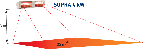 Üşümeye de pişmeye de son! Sert iklim koşulları, sert rüzgarlar, montaj yükseklikleri artık sorun değil. SUPRA serisinde bulunan dört ayrı kapasite sayesinde tüm hava koşullarına uygun ısıtma kapasitesi belirlenebilir,